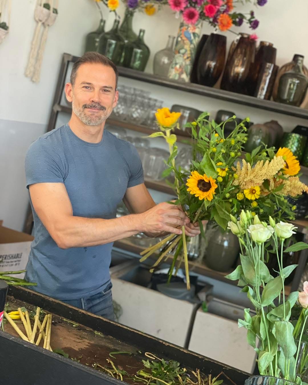 Altijd een glimlach, altijd een bloem in de hand — dat is Steven, onze huisflorist. Met zijn feilloos gevoel voor kleur, sfeer en seizoenen tovert hij elke ruimte om tot een plek waar je instant vrolijk van wordt. Of het nu gaat om een verfijnd bloemstuk voor een receptie, een kleurrijke toets in het onthaal of een speels boeket voor een collega in de bloemetjes te zetten: Steven doet het met passie en oog voor detail.